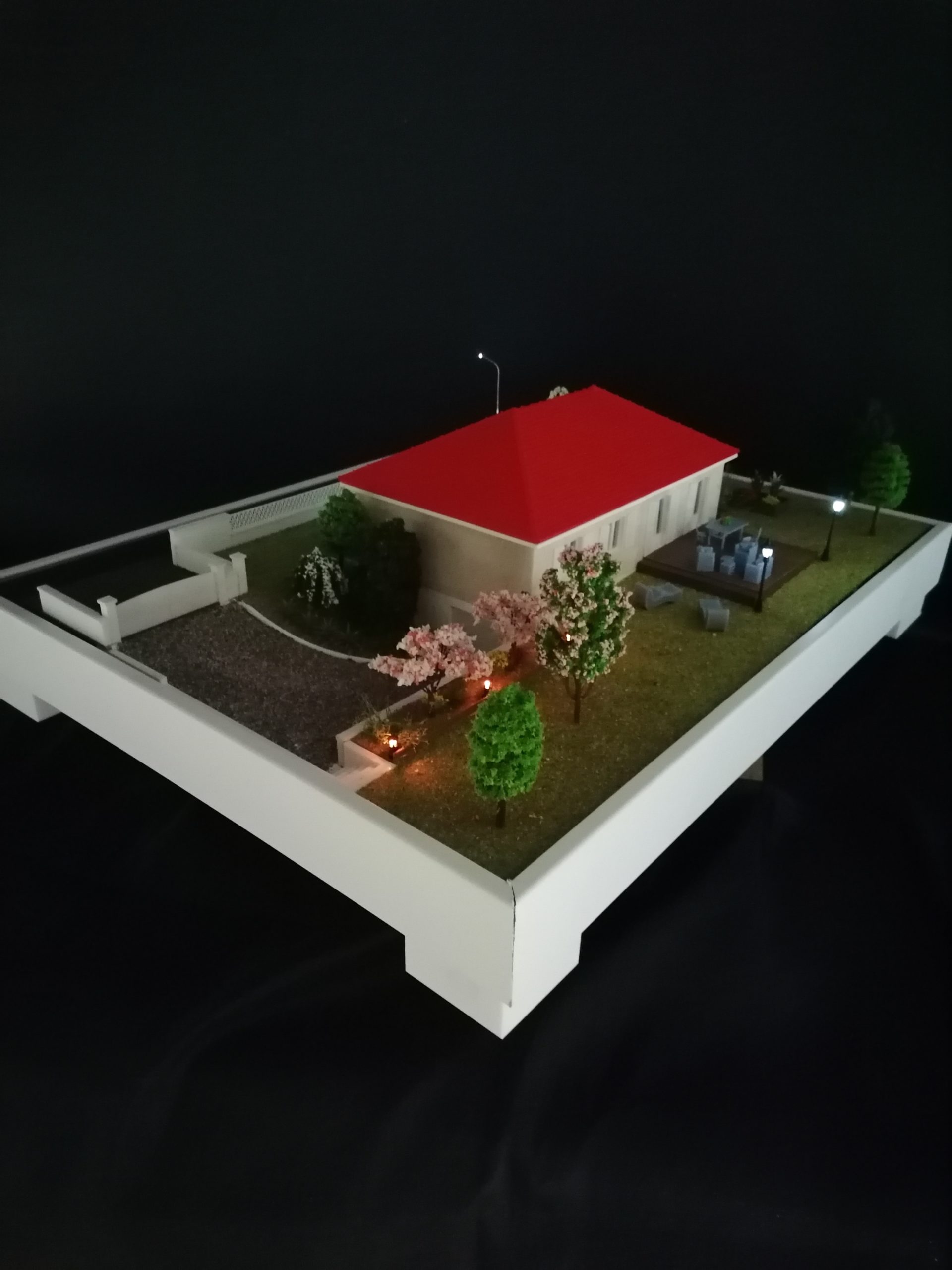 - Mise en valeur de la maquette par la réalisation de son jardin et des voiries.