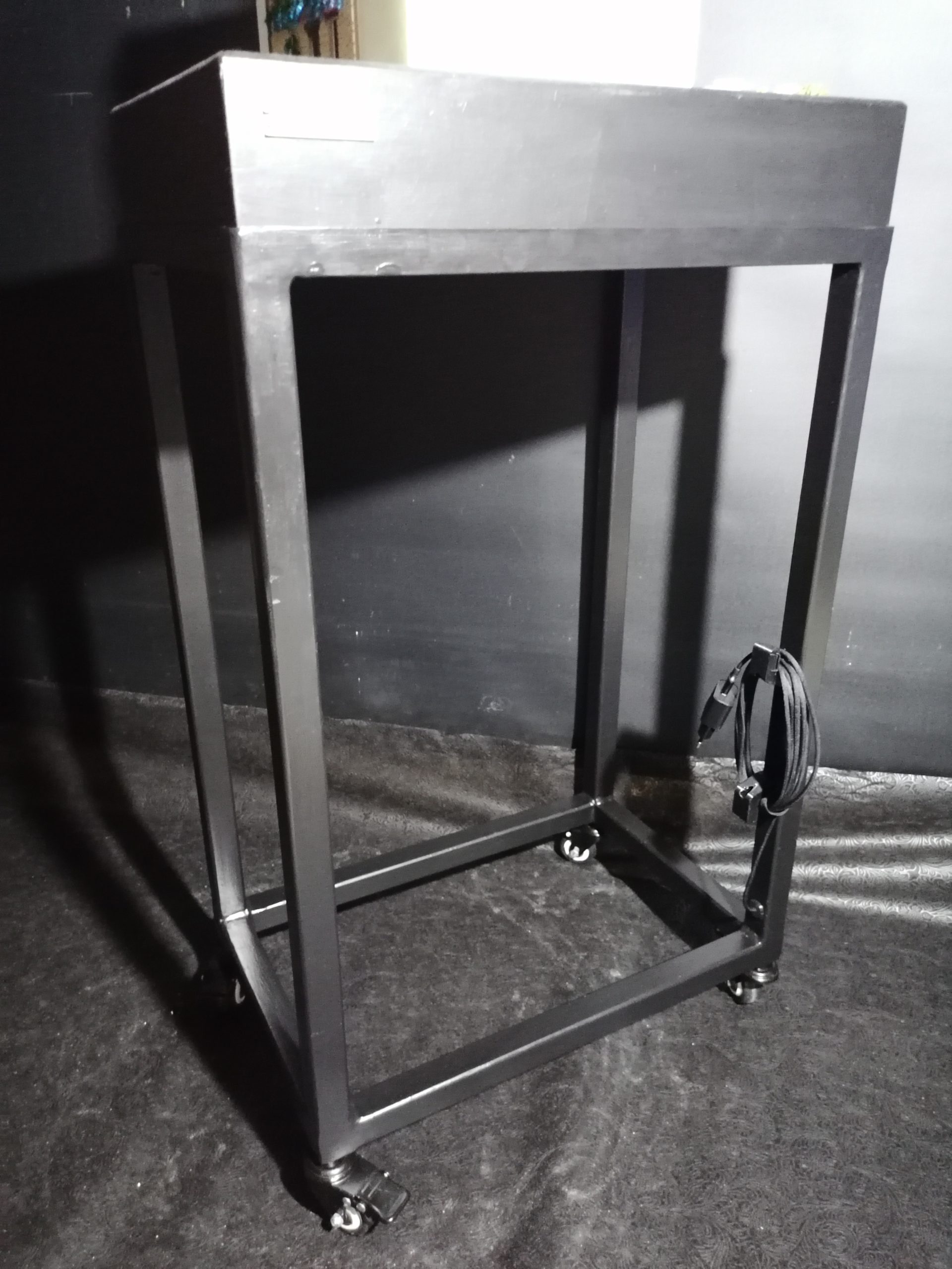 Un cadre Métal avec ou sans roulettes afin d’avoir votre maquette à hauteur et la déplacer à votre guise. L’alimentation électrique est intégrée dans le cadre.